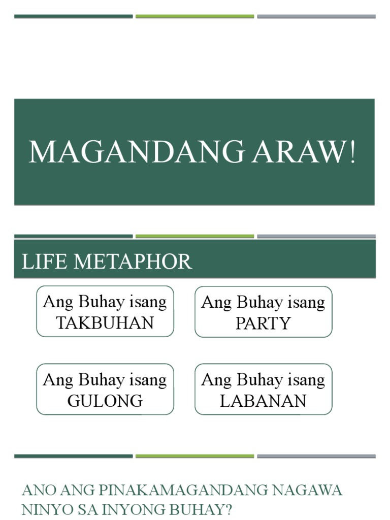 Pagsasanay ipaliwanag mo mula sa gawain 2 pumili ng isang pangunahing paksa ang pantulong na ideya nito pagkatapos ay ipaliwanag ang mga ito. Wakema Myaungmya District Myanmar. Bilang isang mag-aaral ano-ano ang iba pang katangiang dapat mong taglayin upang maiwaksi ang tatlong mukga ng kasamaan.