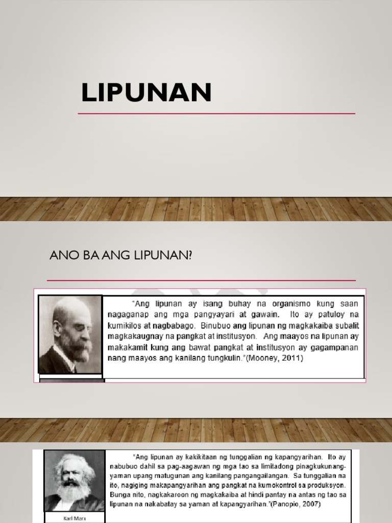 Ang maayos na lipunan ay makakamit kung ang bawat pangkat at institusyon ay gagampanan nang maayos ang kanilang tungkulinMooney 2011. Maraming mukha ang lipunan ngunit ang lahat ay maaaring pagsamasamahin sa dalawang malalaking pankat na nakakasakop dito. Kung lagi kayong nadadaan sa kahabaan ng EDSA ay maihahalintulad natin sa 14 na istasyon ng krus 14 stations of the cross ang kalbaryo at hirap.